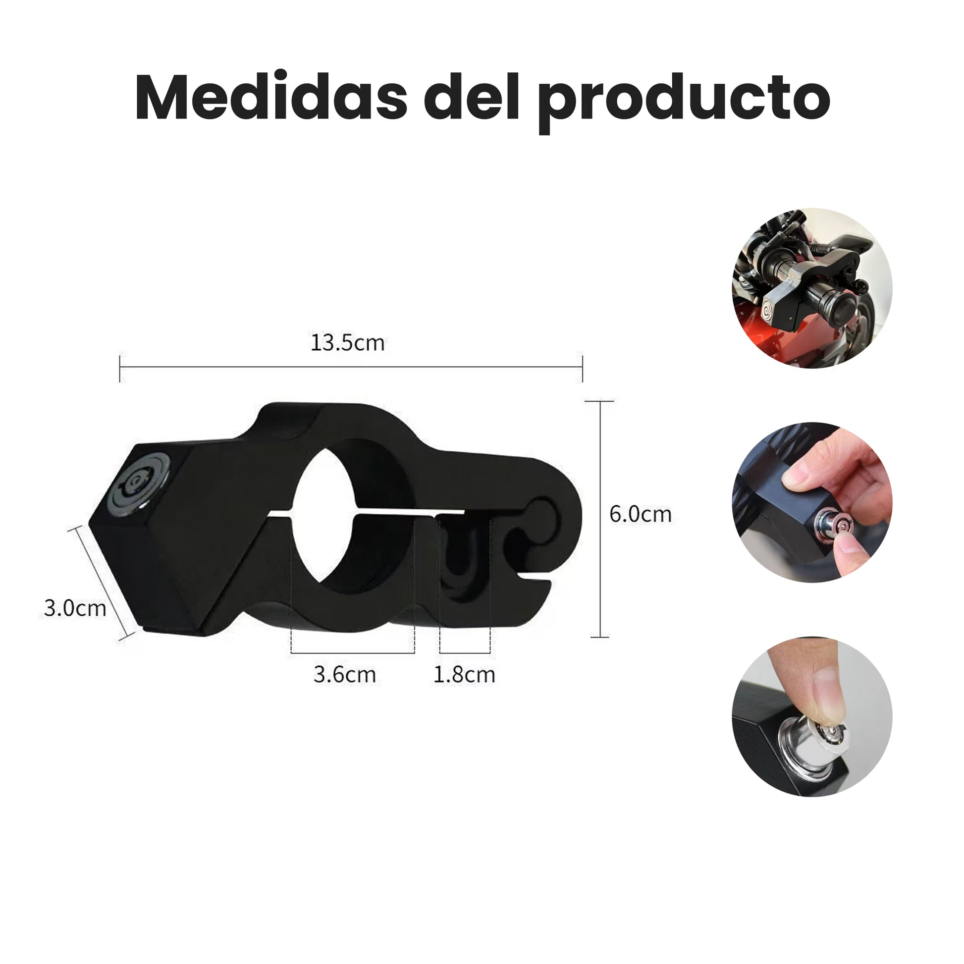 Se instala en el manillar y bloquea el freno - Máxima protección en segundos. Ligero, fuerte y diseñado para mantener tu moto segura siempre.